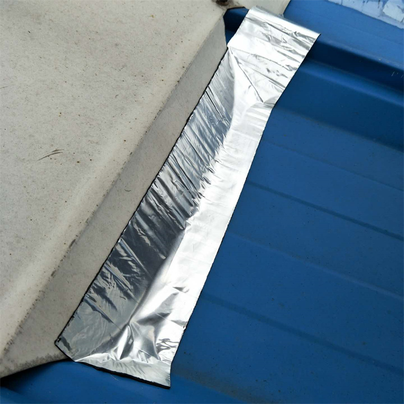 • The bitumen tape that covers the aluminum foil is fit for the waterproofing and sealing for various kinds of roofing engineering, color steel, steel structure, waterproof roll and PC sheet which are exposed to the sunshine.